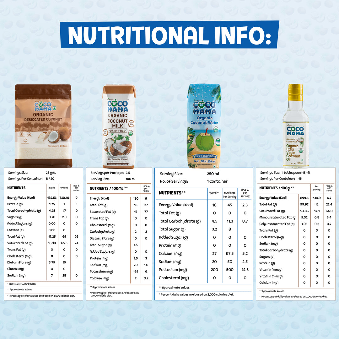 Coconut Milk, Coconut Water, Dessicated Coconut, Extra Virgin Coconut Oil