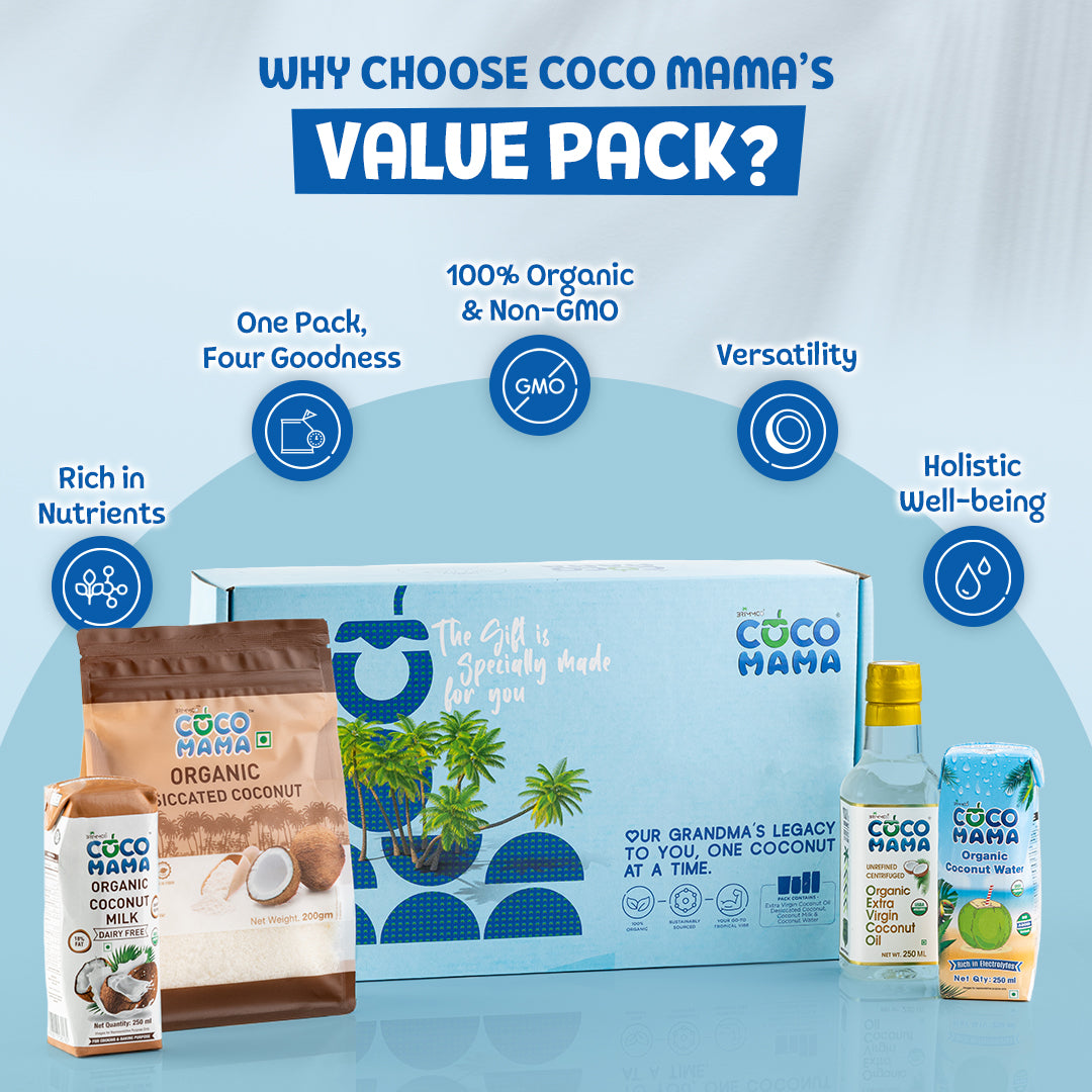 (0)Coco Mama Gift Box | 4-in-1 Coconut Milk, Coconut Water, Coconut Oil & Dessicated Coconut