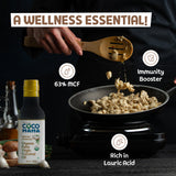 We like to call it “Magic Bottle”, this organic oil works wonders when it comes to cooking, hair care, skin care and everything in between.